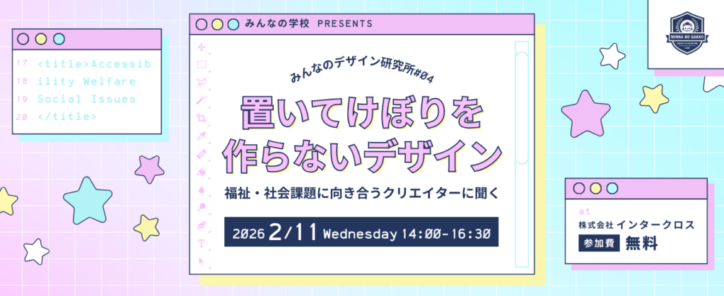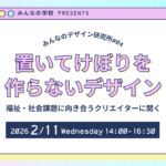 【セミナー情報】2026年2月11日(水)に、みんなの学校セミナー「みんなのデザイン研究所 #04「置いてけぼりを作らないデザイン」」を開催します。
